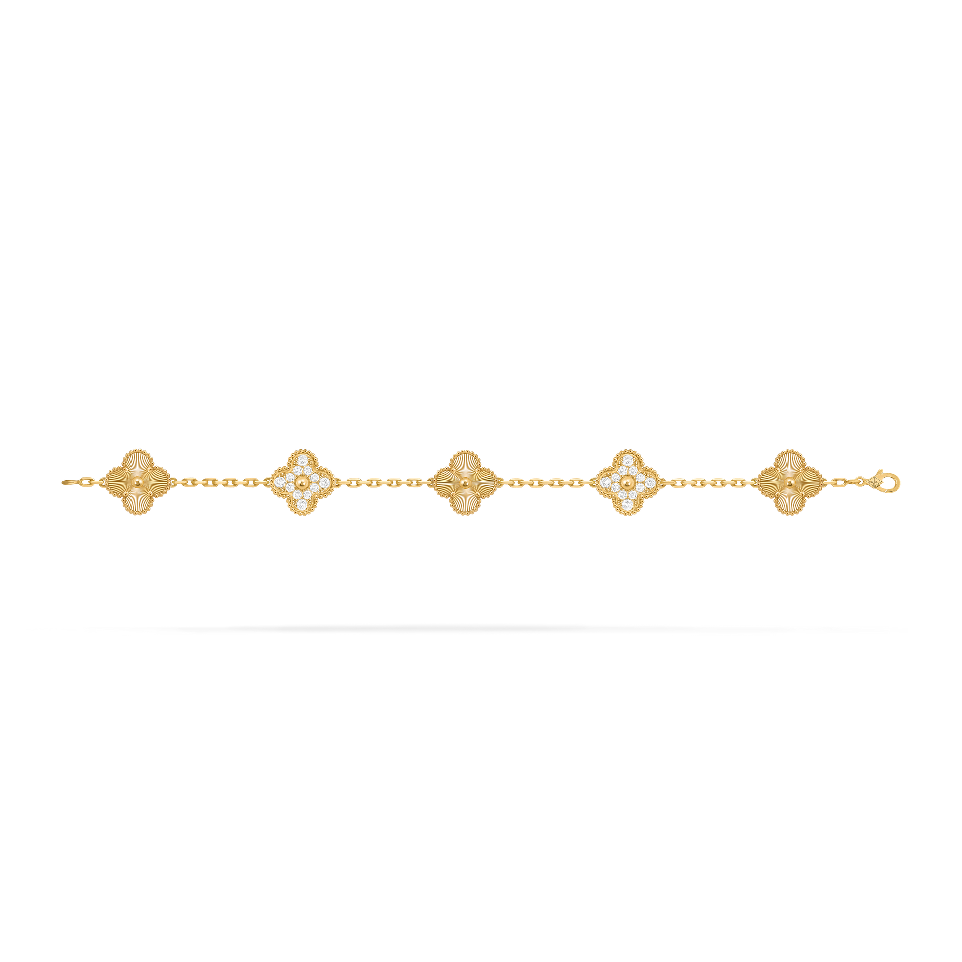 Elevate your everyday elegance with this luxury gold floral bracelet, inspired by timeless clover motifs and fine jewelry craftsmanship. Featuring delicate four-petal flower charms with radiant detailing and sparkling stone accents, this bracelet blends sophistication with modern femininity.